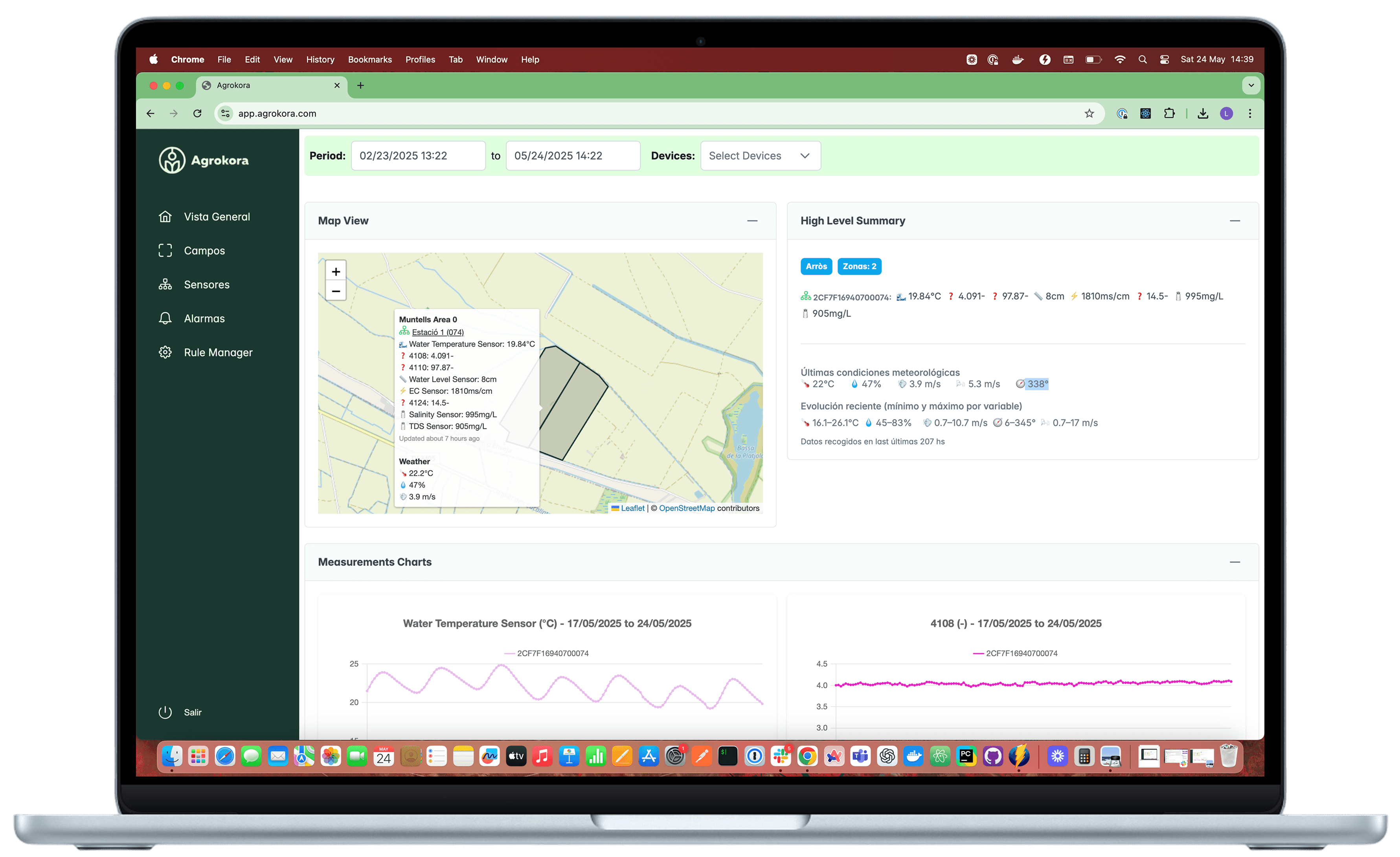 Agrokora is an interoperable IoT platform for connecting sensors from different brands, integrating your other applications, visualizing data in real-time, and implementing custom alerts based on your own rules.